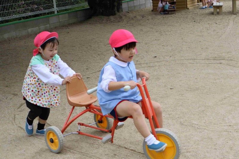 でも元気一杯のもも組さんは園庭に飛び出しましたよ☆みんなで園庭を走って体はポカポカ♡温まった様子です♪ 少しだけ園庭で遊びました♪