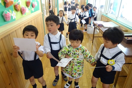 今日は横割りクラスの保育参観でした。お家の方がきてくれる事がとても嬉しい子供達!幼稚園に登園すると、『後で、お父さん、お母さんがくるよ♪』『お兄ちゃんが来てくれるよ!!』『今日は、みんな、お迎えさんよね♪』とお話がとまりません( ´∀` )